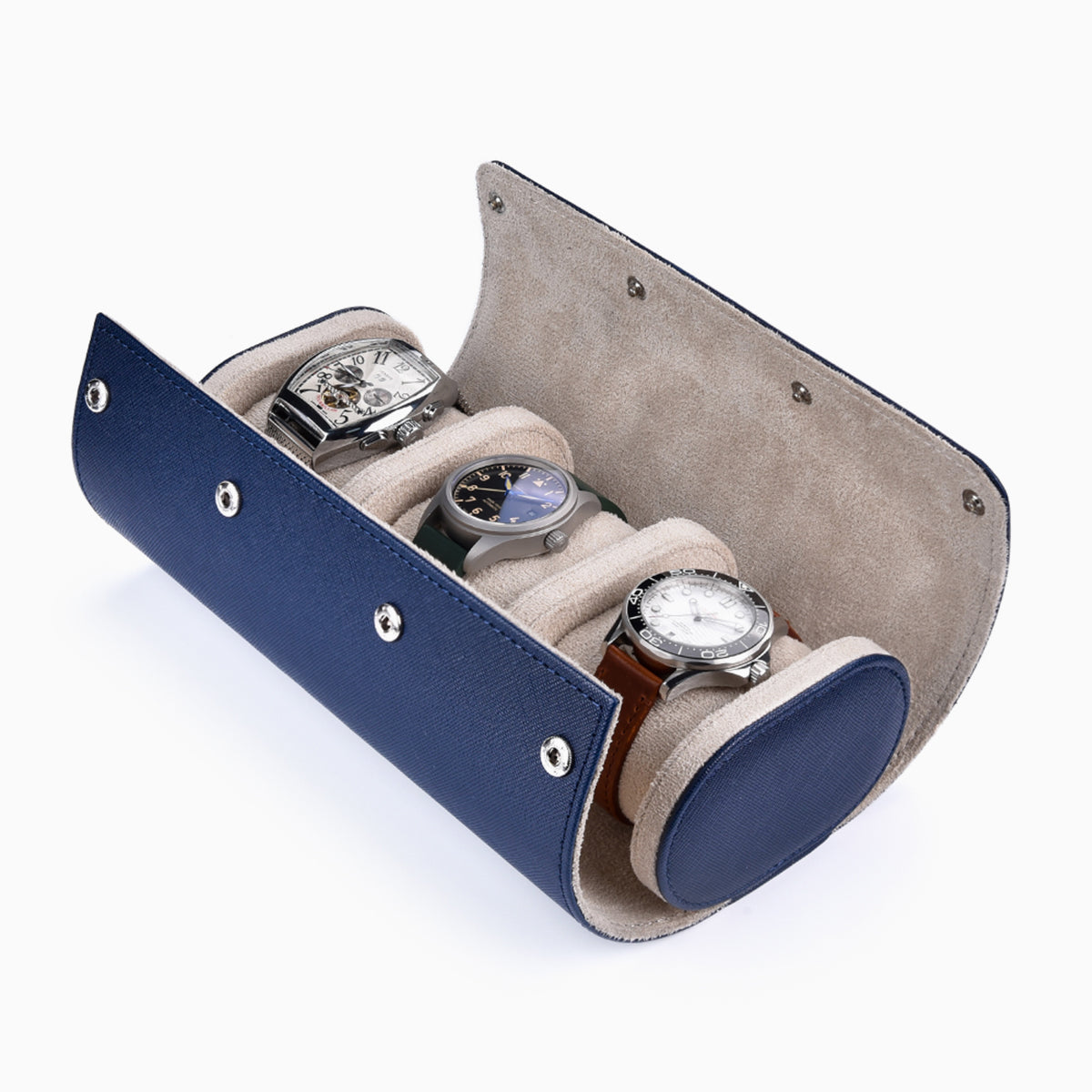 تستوعب هذه الحقيبة الملفوفة بشكل مريح ما يصل إلى ثلاث ساعات، حيث يتم فصل الأقسام الثلاثة بعناية بواسطة فاصل، مما يضمن عدم احتكاك ساعاتك ببعضها البعض وتظل محمية من الخدوش.