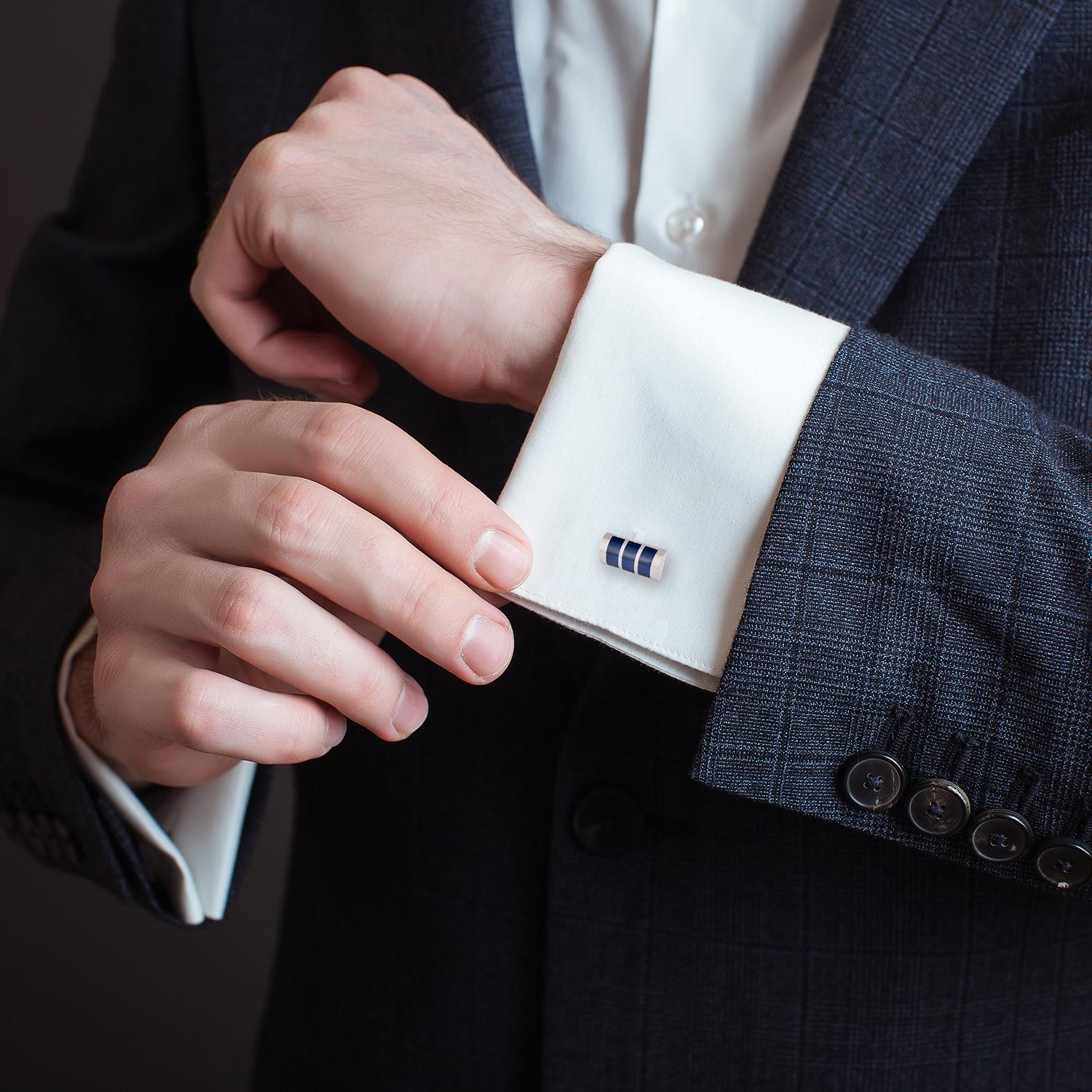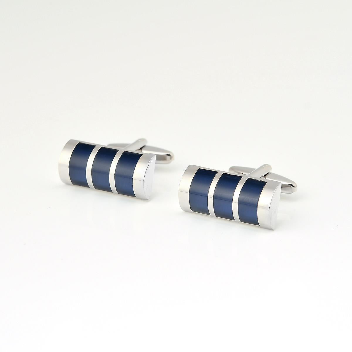 Precision, design and immaculate detail are tenets echoed through the details of Adriano cufflinks. This slick Blue Horizontal Cufflink pair is adorned with a silver-tone and completed with curved edges. Wear yours to add an accomplished accent to your formal tailoring. Traditional bullet-back fastening secures your shirt cuffs in place. Made from fine material in silver-tone metal and stamped with the brand's signature.